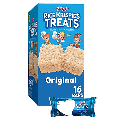 Rice Krispies Treats Original crispy marshmallow squares are the perfect sweet treat or cereal bar option to pack for school snack time, treats for kids and adult snack time option to go. Satisfy your sweet craving with the delicious flavor and convenience for kids and adults snack time. These deliciously chewy individual marshmallow treats are made with crispy rice cereal and the taste of soft, gooey marshmallows for a treat bar the whole family will love. Stock your pantry with this convenient grab and go sweet snack alternative to treat your inner child. Create your own ice cream sandwiches for dessert or birthday treats. Pack Rice Krispies Treats bars for a camping snack alternative to roast or pair with graham crackers and chocolate for an irresistible take on s’mores. There’s a Rice Krispies Treats bar for every craving - from the familiar taste of soft mini marshmallows in Homestyle, to the decadent layers of Chocolatey or Caramel and crunchy sea salt pretzel pieces in Rice Krispies Treats Bliss bars, to the rich and creamy peanut butter flavor of Chocolatey Peanut Butter bars. Unwrap some holiday cheer with these soft crispy marshmallow squares on your holiday cookie platter, or show your Valentine you really care with this sweet Valentine’s Day treat. Share a Halloween treat that is great for small hands and mom-approved for trick or treat fun. Add to care packages and gift bags and give the gift of marshmallowy goodness any time of year.